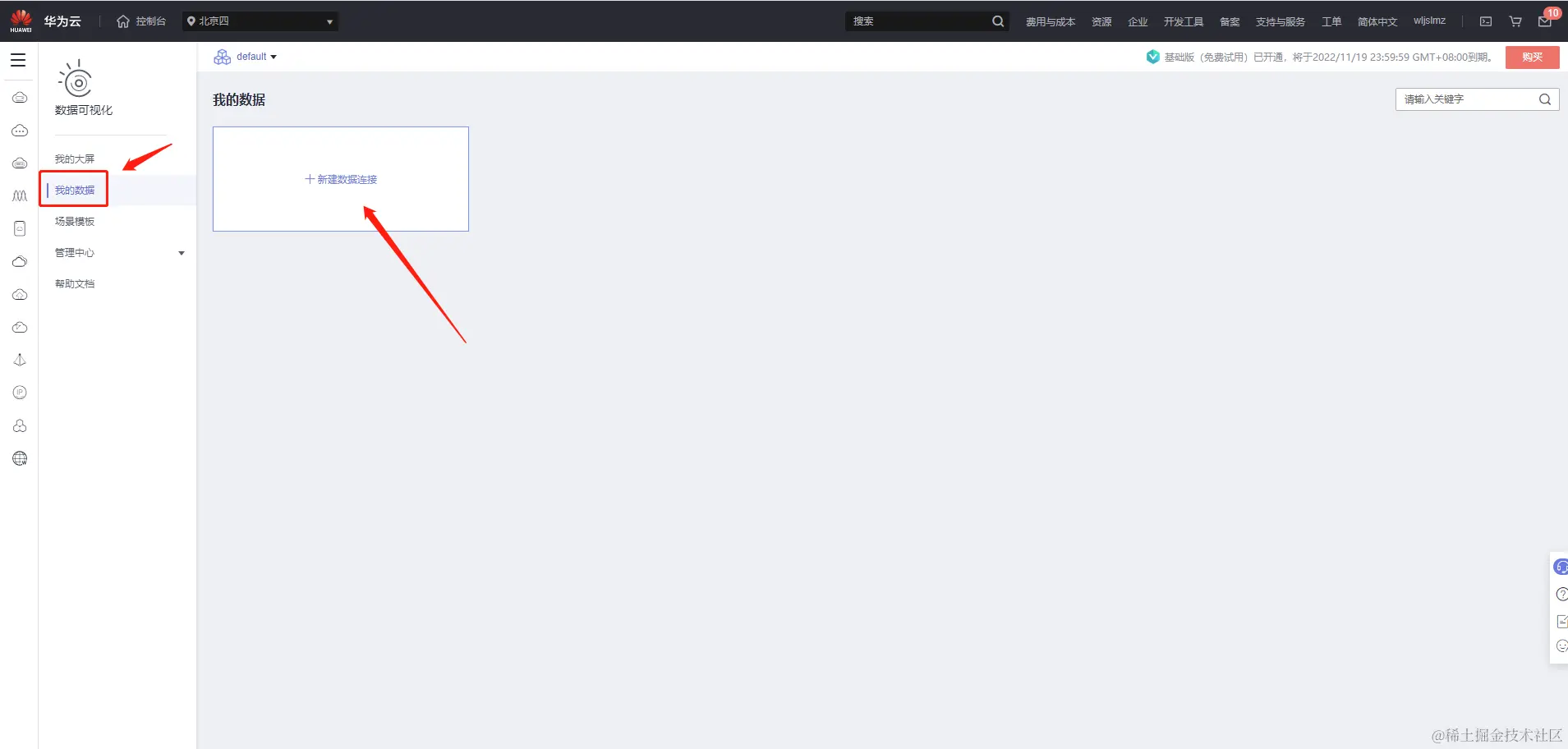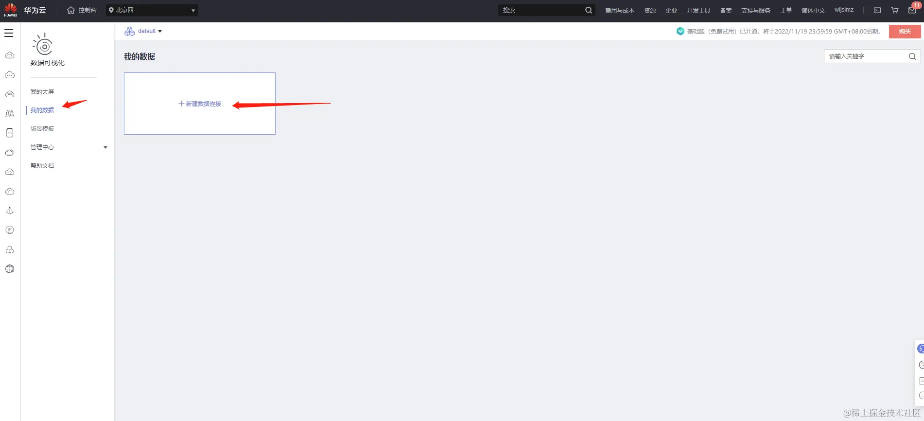 选择【我的数据】,点击【新建数据连接】: