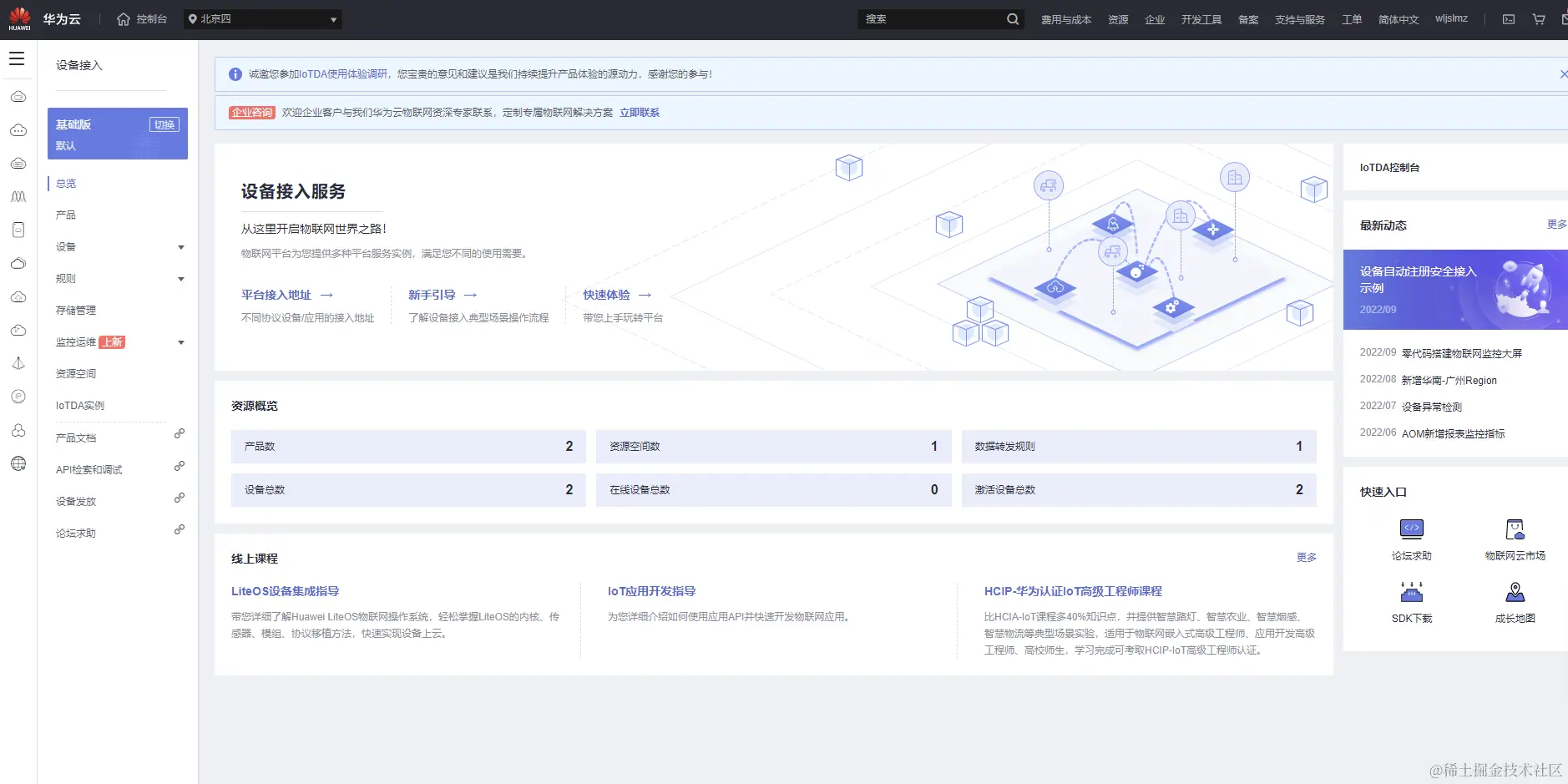 进入【设备接入 IoTDA】界面:
