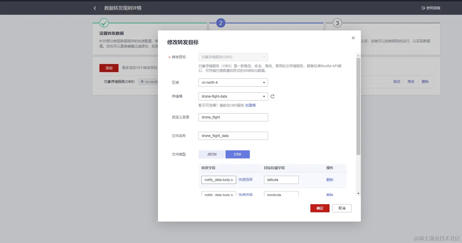 - 转发字段:notify_data.body.services[0].properties.latitude,目标存储字段:latitude