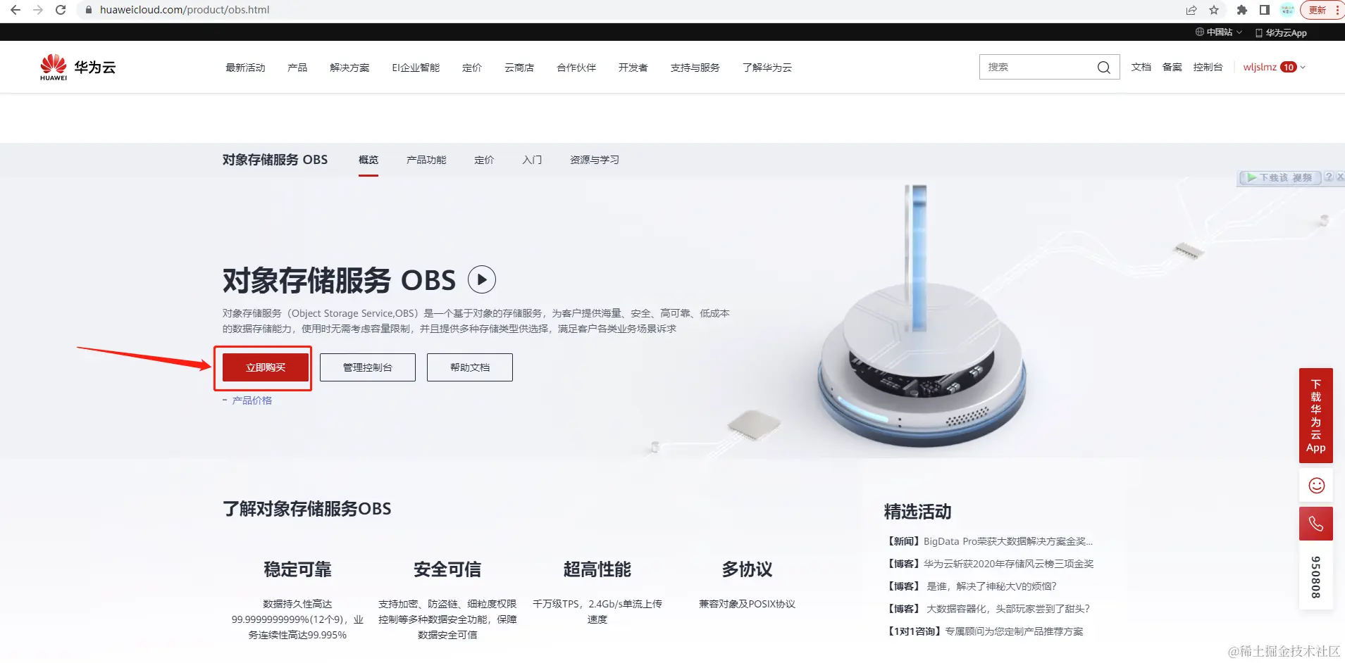 https://www.huaweicloud.com/product/obs.html