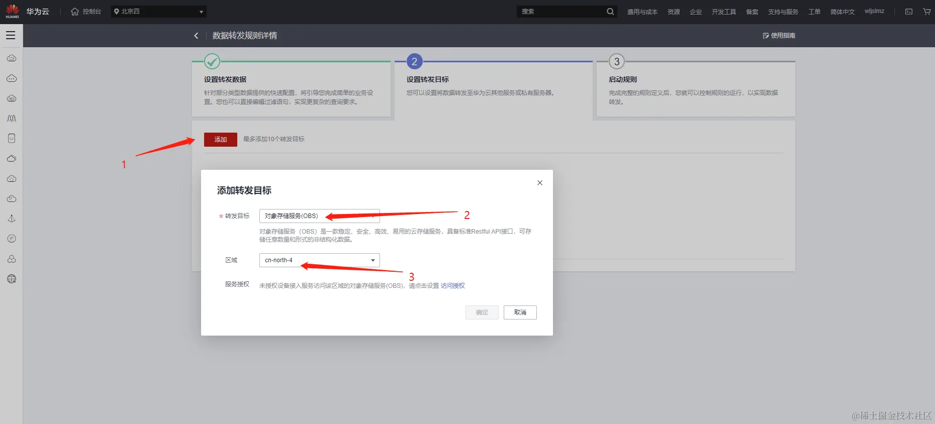 - 转发目标:对象存储服务(OBS)