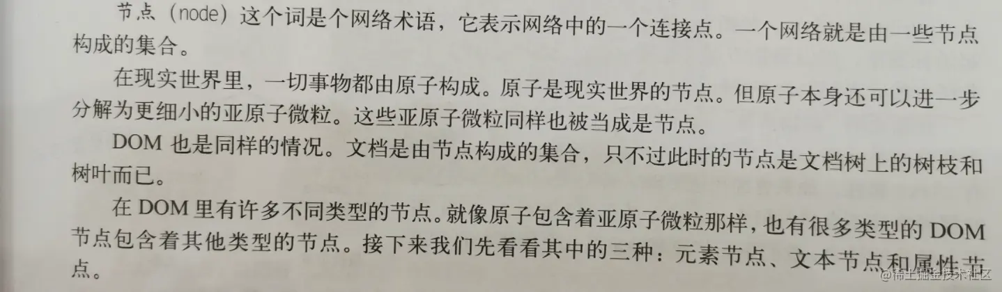 - 构成文档内容;大多数内容由文本提供;XHTML 文档里,文本节点总是被包含在元素节点的内部。nodeType 属性值是 3。