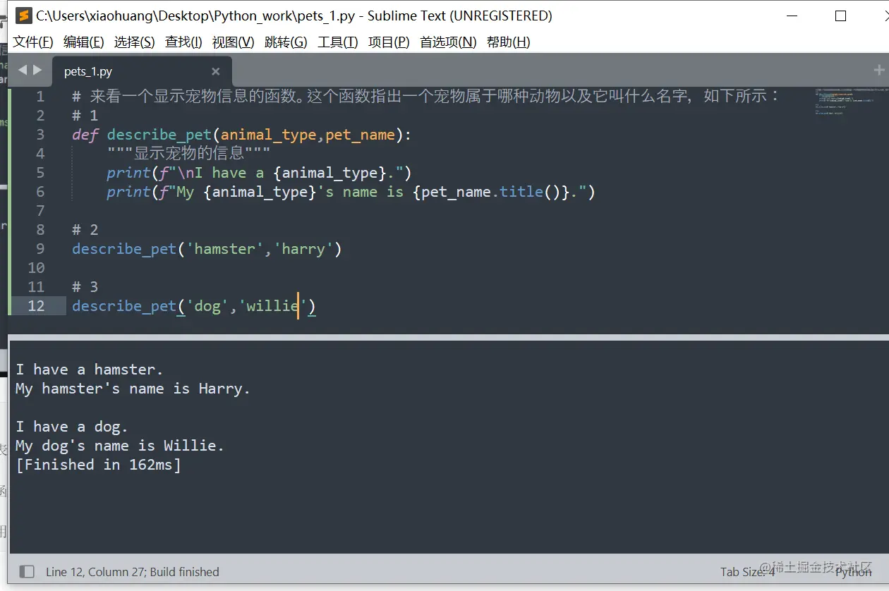 现在,使用这个函数的最简单方式是在函数调用中只提供小狗的名字: