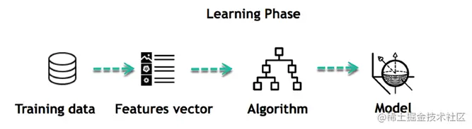 • 训练:这个想法是给出一组输入(特征)和它的预期输出(标签),所以在训练之后,我们将有一个模型(假设),然后将新数据映射到训练过的类别之一。