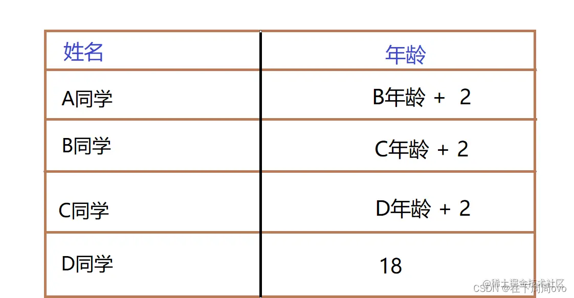你想知道A同学多大,你是不是还得去问B同学的年龄?B同学说,我也不告诉你,但我比C同学大两岁。
