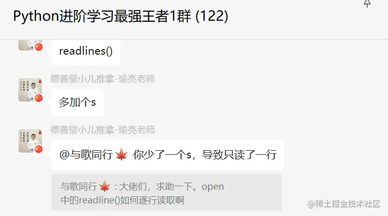 前几天在Python最强王者交流群【༺ཉི།།与歌同行ཉྀ༻】问了一个Python文件读取的问题,提问截图如下: