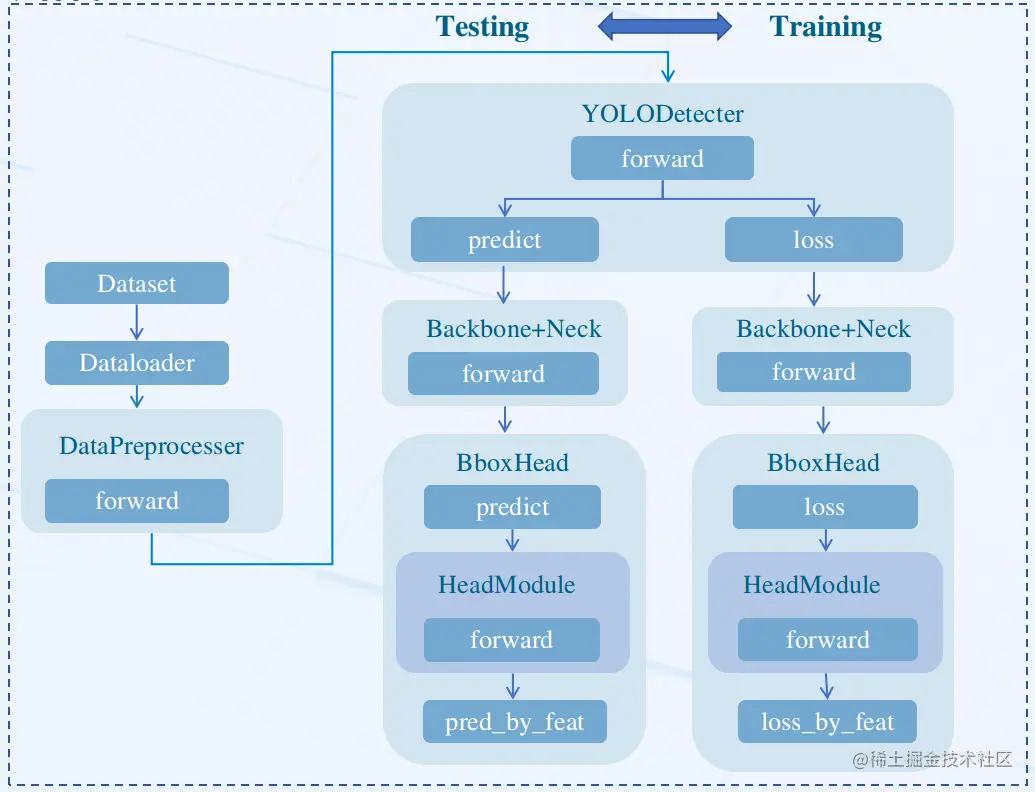 MMYOLO 训练和测试流程图,MMDetection 也遵循此规范流程