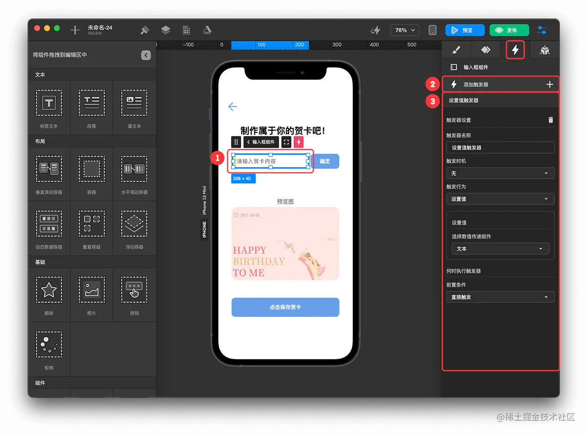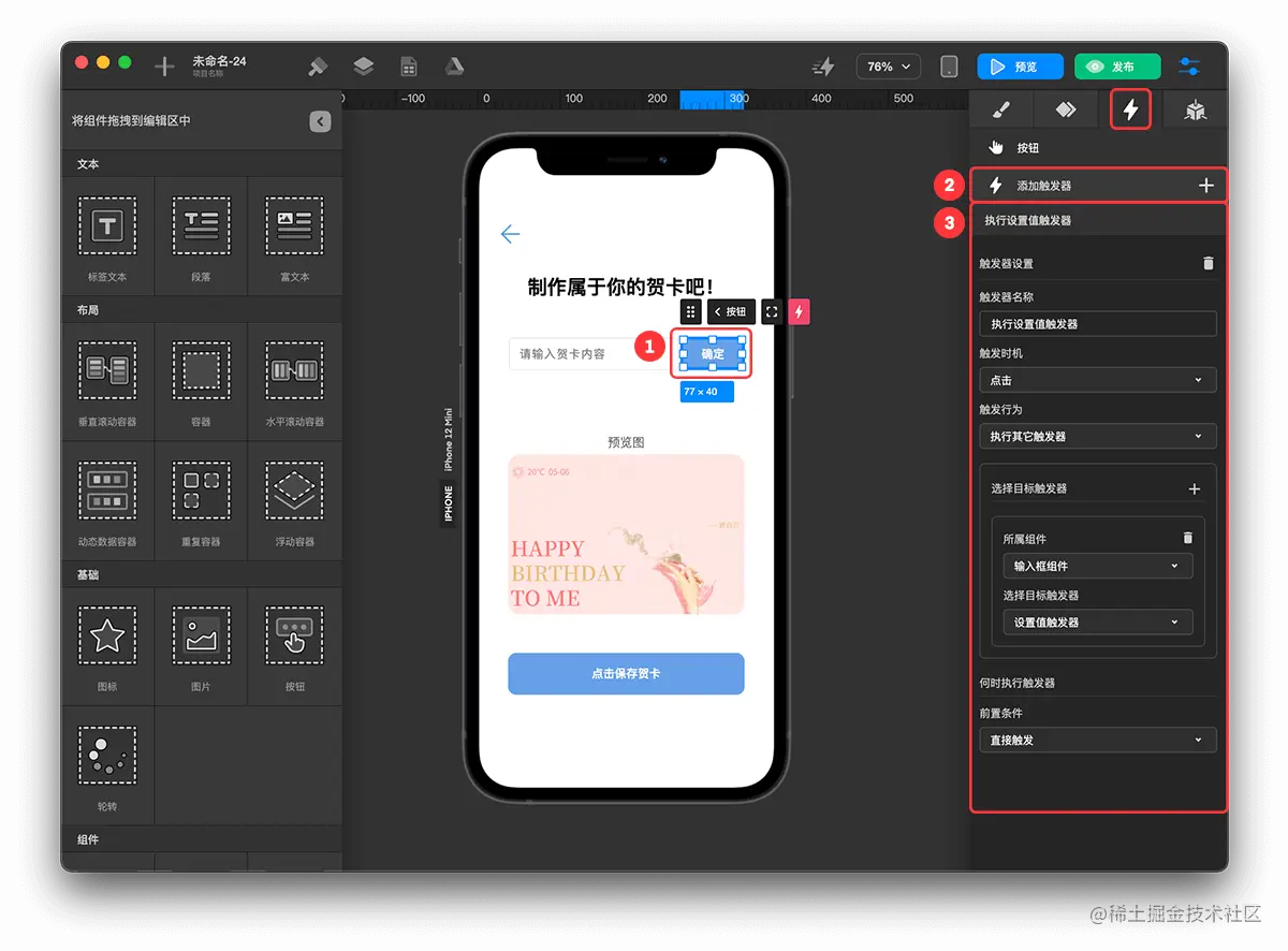 - 用于触发上传文字显示的 按钮组件(下文简称“ 触发组件 ”)