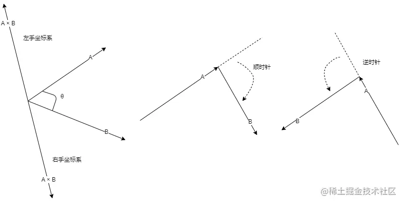 我们需要将 B 矢量的尾部移动到 A 矢量的头部,然后观察是顺时针旋转还是逆时针旋转。