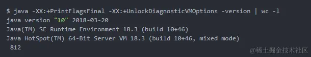 举例来说,macOS 上的 Java 10 共有近千个配置参数:
