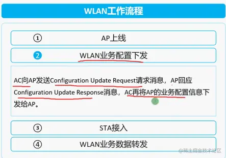 AC将WLAN业务配置下发到AP生效(上线之后,AC就知道有多少个AP上线了,就可以将WLAN业务配置通过capwap隧道下发到AP)[capwap是一种基于IP协议的隧道,是三层的隧道技术]