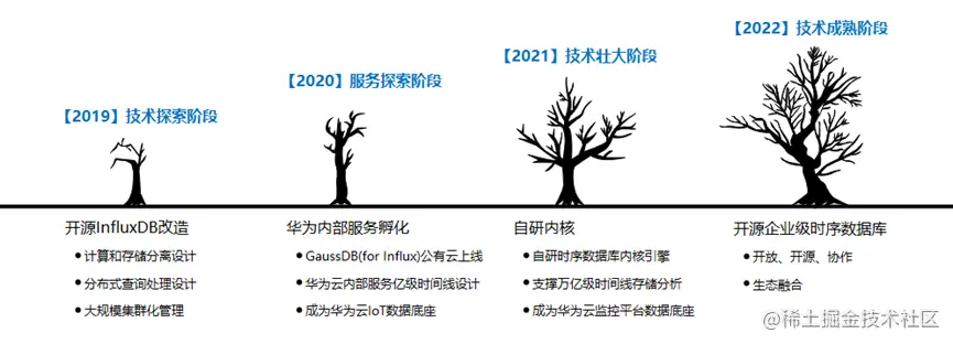华为云整合产业和技术优势,打造了业界领先的企业级时序数据库GaussDB for Influx,并经过外部公有云业务服务化的锤炼以及内部DevOps等业务的长时间打磨,在大规模集群、高性能查询、分级压缩存储等方面都有明显优势。今年6月,华为云宣布将GaussDB for Influx内核正式对外开源,开源品牌命名为openGemini。