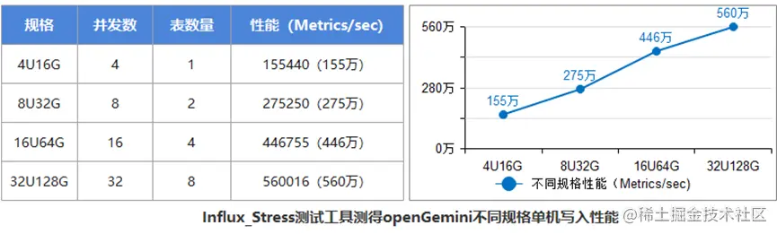 从4U的155万Metrics/s平稳增长到32U的560万Metrics/s