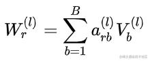 a_rb是W_r再V_b上的分解系数,B是超参数,控制着V_b的个数,通过上式W_r变成了一组基的线性加和。