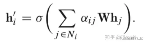 按照注意力机制加权求和的思路,节点V_i新的特征向量为: