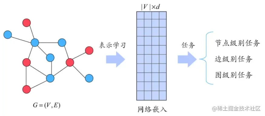 图表示学习的主要目标就是将图数据转化为一种低维稠密的向量化表示,同时保证图数据的某些性质在向量空间中也能够得到对应。