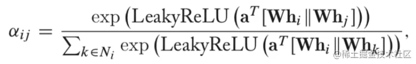 假设中心节点为V_i,则邻居节点V_j到V_i的权重系数为:e_ij=a(Wh_i,Wh_j),W是该层节点特征变换的参数,a(·)是计算两个节点相关度的函数。原则上我们可以计算图中任意一个节点到节点V_i的权重系数,这里为了简化计算,将其限制在一阶邻居内。