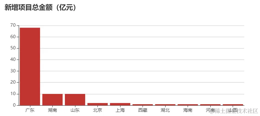 本周新增项目金额地区TOP10:广东、湖南、山东、北京、上海、西藏、湖北、海南、河南、山西