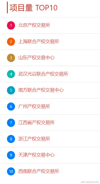 本周交易机构新增披露项目量排名TOP10有:北京产权交易所、上海联合产权交易所、山东产权交易中心、武汉光谷联合产权交易所、南方联合产权交易中心、广州产权交易所、江西省产权交易所、浙江产权交易所、天津产权交易中心、西南联合产权交易所