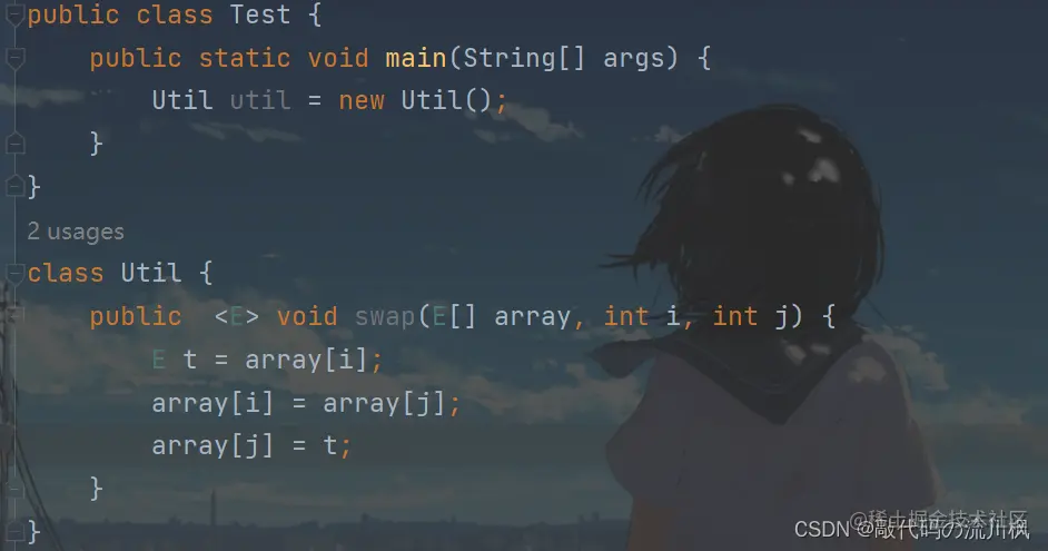 是泛型的形参,void是返回值,可以直接通过类名.来调用,不用new