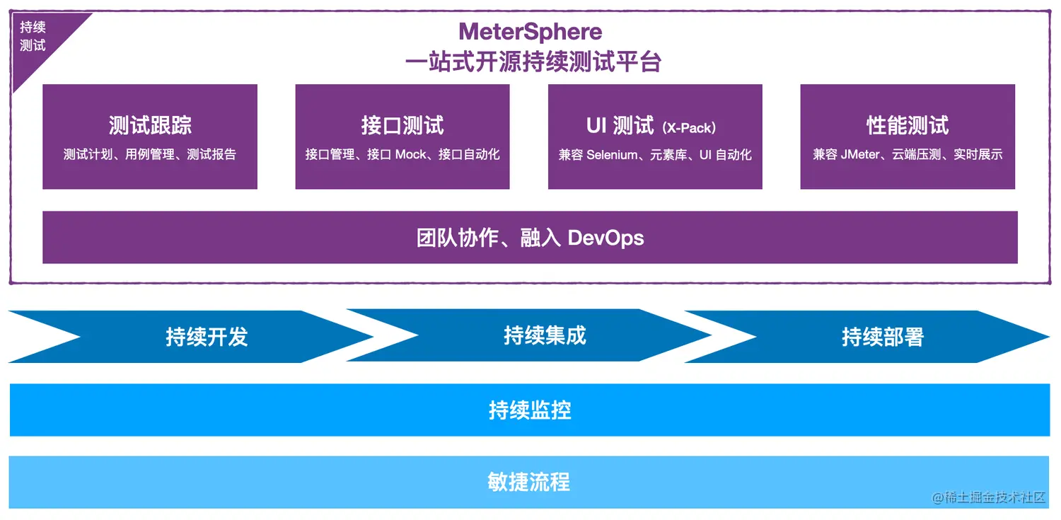 MeterSphere 是一款一站式开源持续测试平台, 涵盖测试跟踪、接口测试、UI 测试和性能测试等,全面兼容 JMeter、Selenium 等主流开源标准,能够有效助力开发和测试团队在线共享协作,实现端到端的测试管理跟踪可视化、自动化测试、性能测试及融入持续交付 DevOps 体系,并充分利用云弹性进行高度可扩展的自动化测试,从而加速高质量的软件交付,推动中国测试行业整体效率的提升。(官方简介)