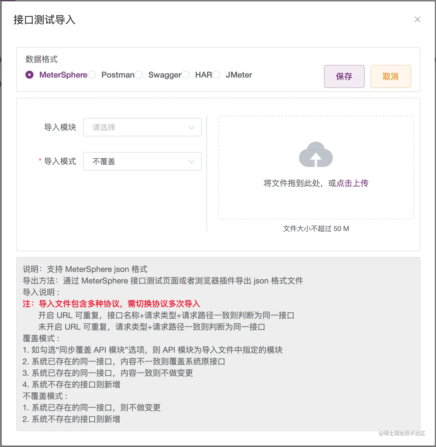 支持导入第三方测试用例,如Postman、Jmeter文件,以及Har格式等。