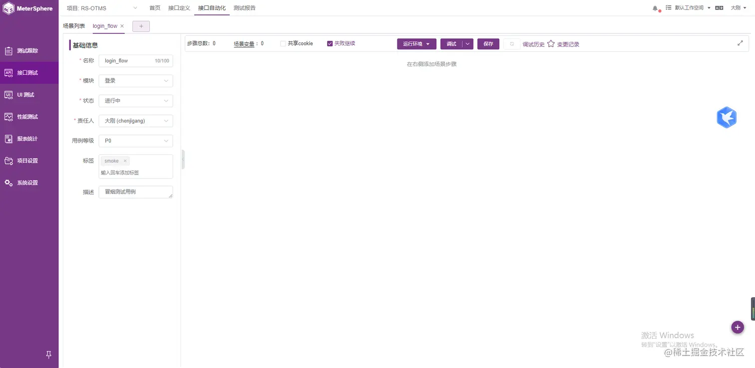 在接口测试-接口自动化中,创建“场景”文件夹,例如:登录,随后新增一个场景,例如:登录流程。