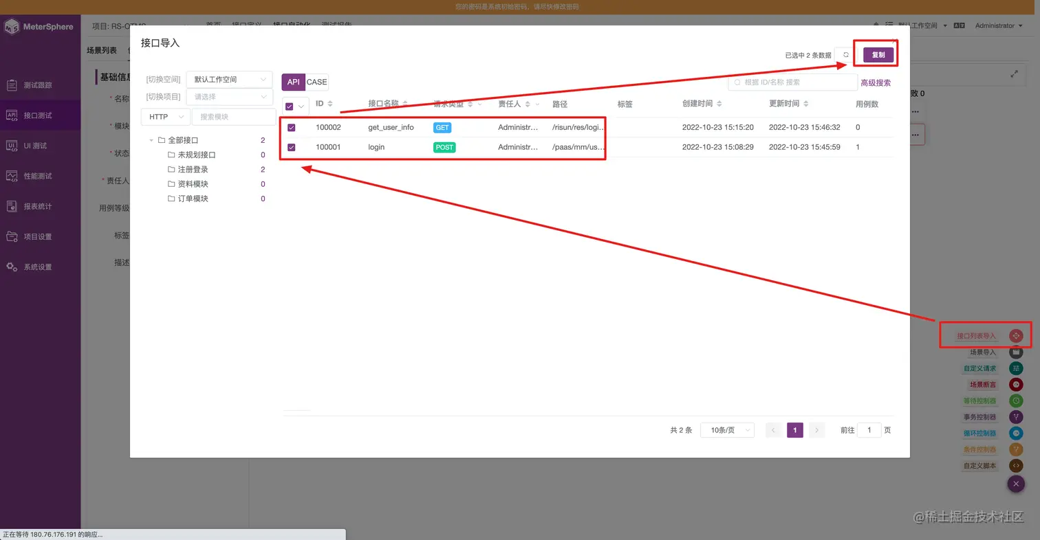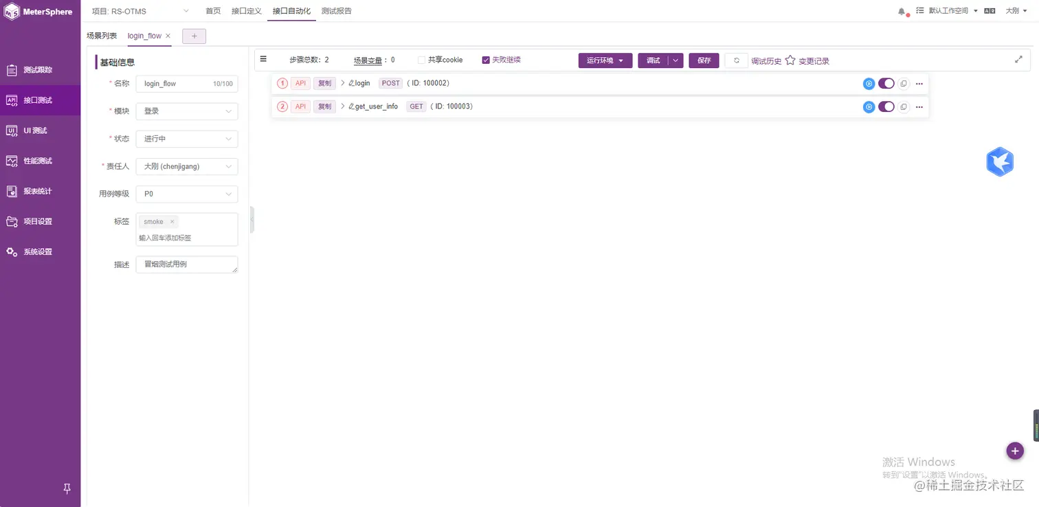 导入完成后,即可在登录流程这个场景中看到导入的接口作为步骤,拖动接口上下滑动可以调整步骤顺序。