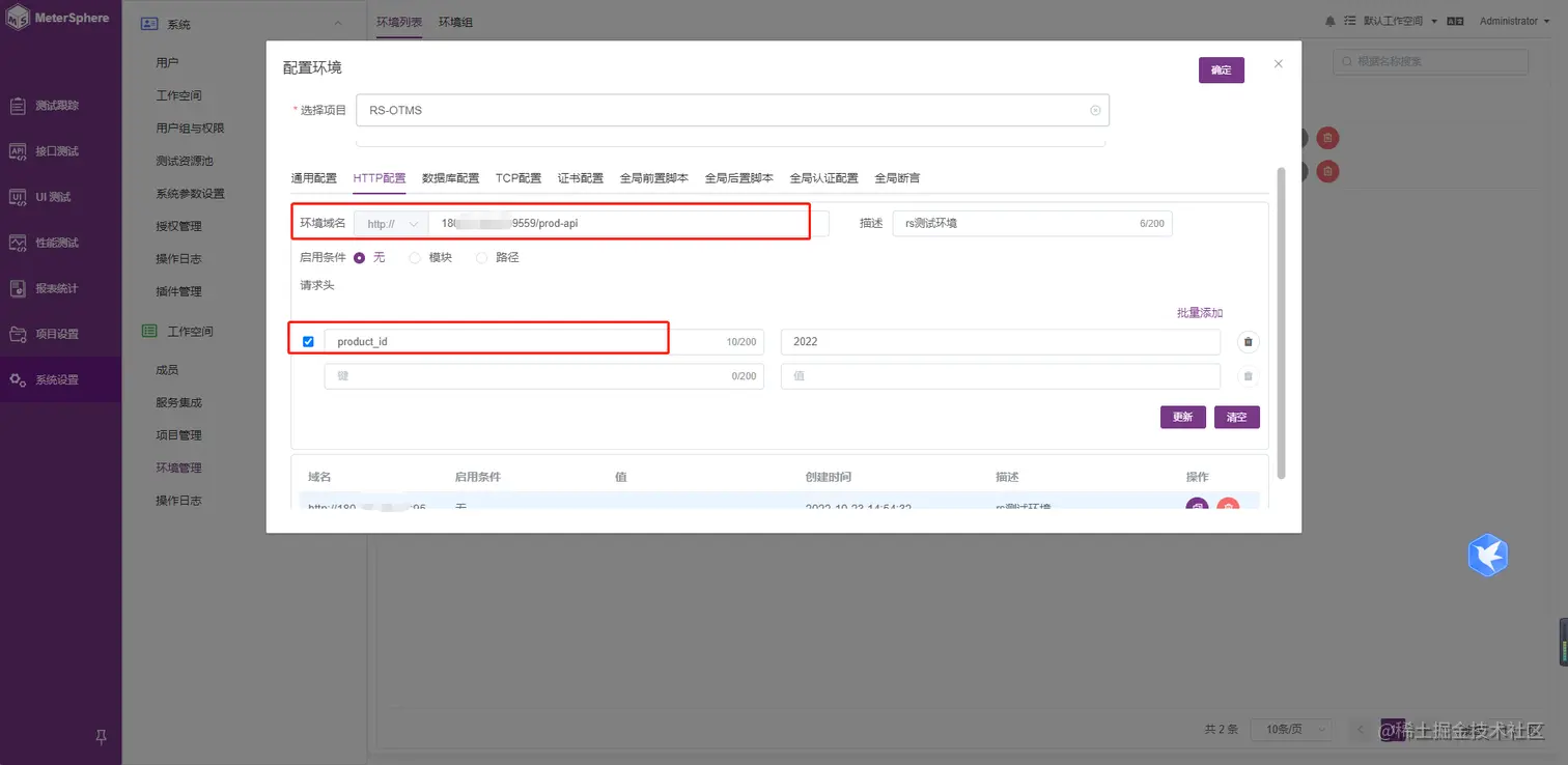 - HTTP配置中,可以配置项目的请求URL,一些固定不变的请求头等。后续测试过程中,可以直接选择此环境