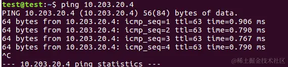 「优点」:只要宿主机可以正常上网(不论是公共网络还是手机热点),虚拟机都可以访问外网。(宿主机IP地址为:10.203.xx.x)如下图:虚拟机可以ping通宿主机。