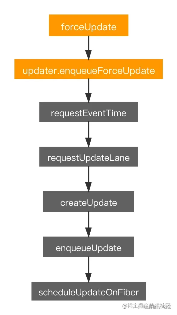 forceUpdate 的流程与 setState 几乎一模一样:
