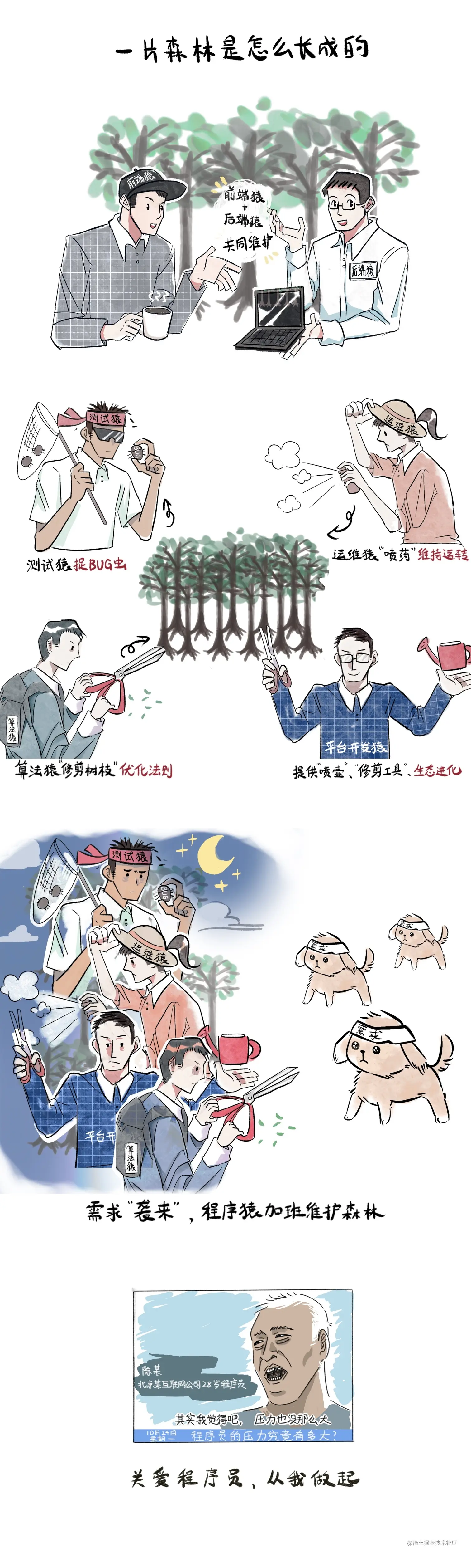 程序员作为一群专业的护林员,他们以代码为工具,协同行动,兢兢业业地维护着整个森林生态的平衡...
