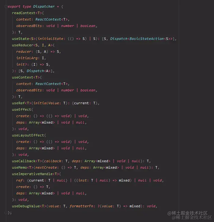 看看 Dispatcher,都是和 React Hooks 相关的。