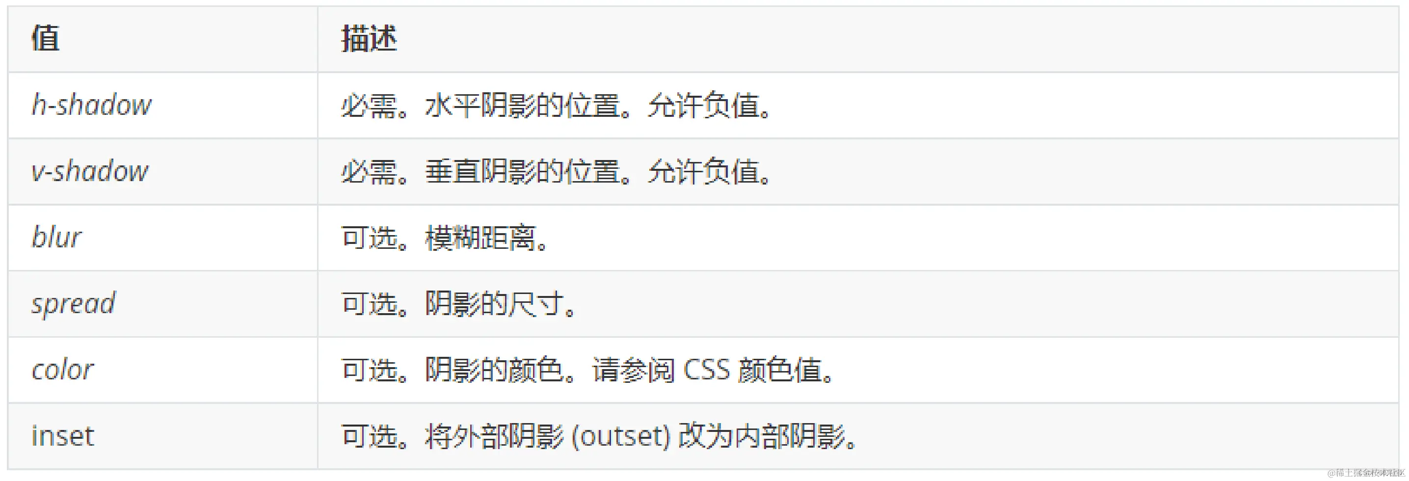 box-shadow: h-shadow v-shadow blur spread color inset;