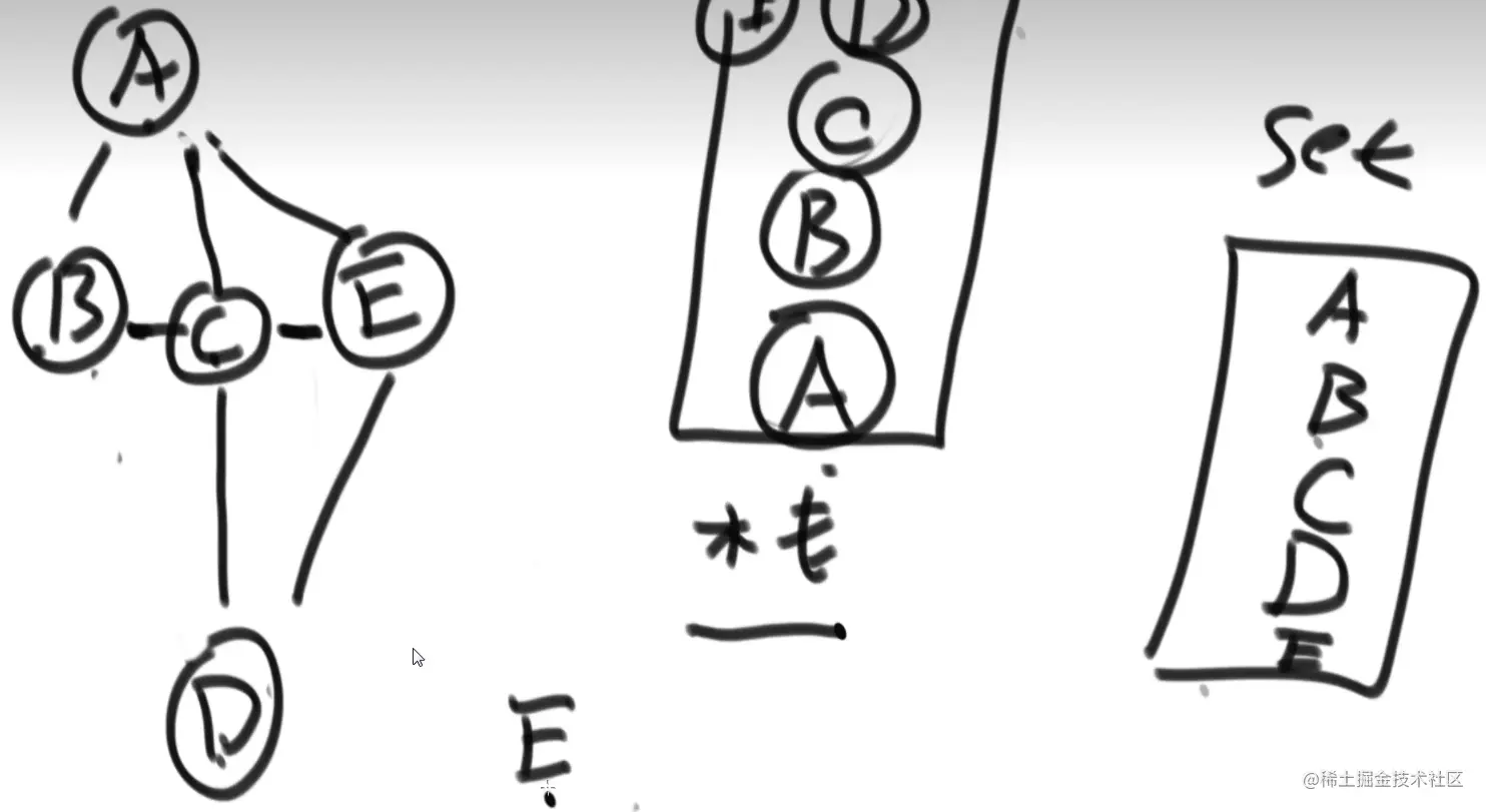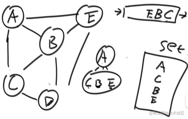 使用set是为了节点不重复加进queue,防止程序进入死循环 通过输出得出遍历顺序