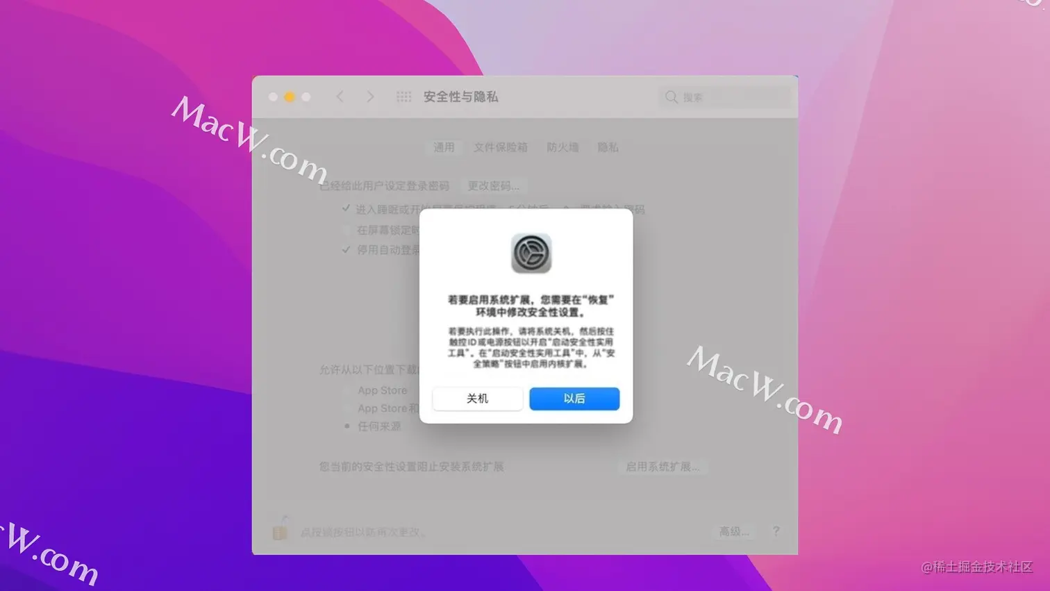 M1芯片电脑添加系统扩展时提示:若要启用系统扩展,您需要在“恢复”环境中修改安全性设置解决方法