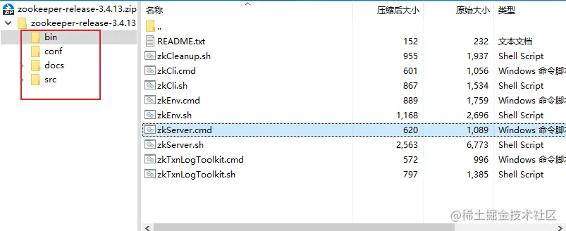 如果下载的是 3.5.5 之前的版本,解压后需要检查一下是否有 lib文件夹,我自己用的3.4.13 是没有lib文件夹的,所以才会显示启动找不到主类。可以随便找一个有lib文件夹的版本,在后面高版本的里面,选择一个 后缀带 -bin的地址,可以直接下这个,这个我试了,可以用。zookeeper 3.6.3 下载链接 。下载完成解压,直接把解压后得到的 lib 文件夹复制到 你使用的版本的文件目录即可。