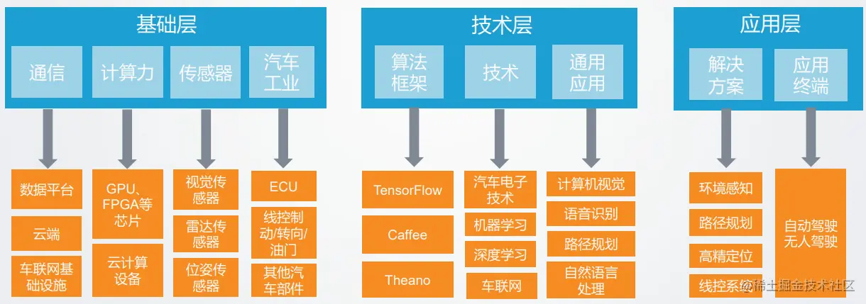 智能驾驶车辆的物理架构大体上由环境传感器平台、计算平台,决策规划与定位导航,智能底盘(控制与执行)这几个部分组成。