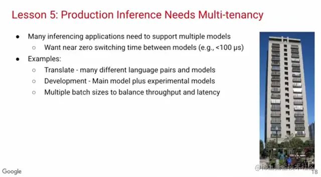 DNN需要使用多租户技术(multi-tenancy)。不少深度学习论文的一个假设是同一时间只需运行一个模型,但在实际应用中,有不少情况都需要在不同模型中切换。