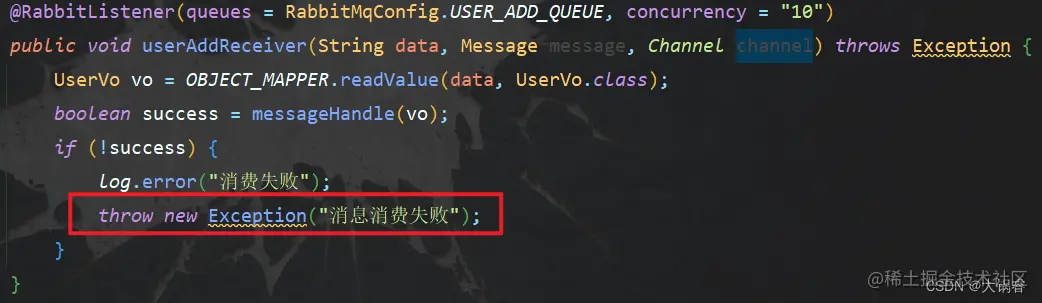 // 通过业务控制是否消费成功,消费失败则抛出异常触发重试