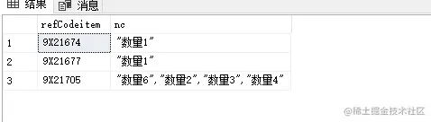 select refCodeitem, STUFF((SELECT ',' + '"' + ISNULL(ItemType,'') + '"'