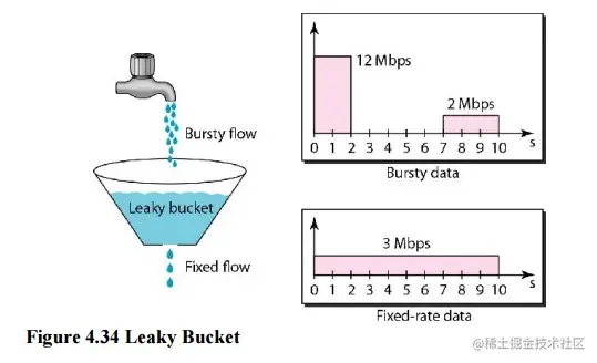 - 漏桶限制的是常量流出速率(即流出速率是一个固定常量值,比如都是1的速率流出,而不能一次是1,下次又是2),从而平滑突发流入速率;