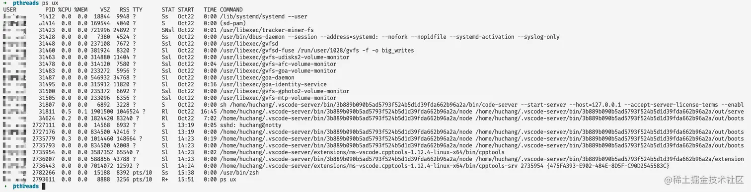 我们可以看到这个进程的 STAT 当中还有一个 l 表示这是一个多线程的程序。