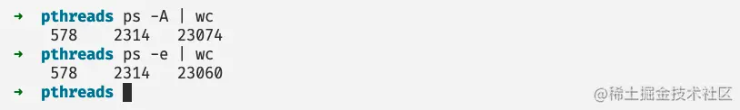 上面的两个命令输出系统当中所有的进程信息,我们可以使用这个命令统计系统当中一个有多少进程: