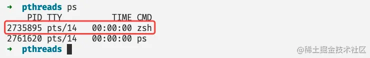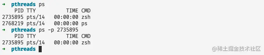 当我们在命令行当中直接输入 ps 命令,那么就只能够看到在当前终端当中启动的进程,即使同一个用户启动其他的终端,在这个终端当中也不能看到同一个用户在其他终端启动的进程,如下图所示:
