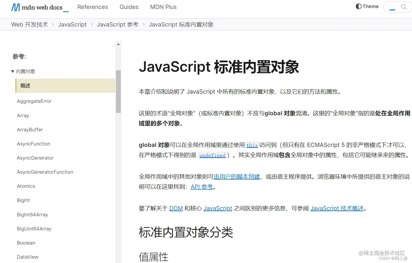 去看JavaScript的MDN文档,发现其中的内置对象很多:编辑