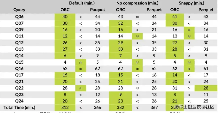 Parquet vs ORC 对比