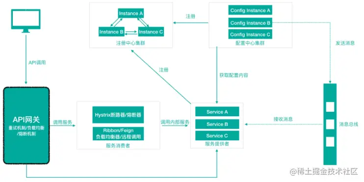 Spring Cloud 规范及实现意图要解决的问题其实就是微服务架构实施过程中存在的一些问题,比如微服务架构中的服务注册发现问题、网络问题(比如熔断场景)、统一认证安全授权问题、负载均衡问题、链路追踪等问题。