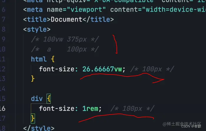 聪明的你也许一经发现,这不就是单位x吗,没错根据定义可以发现1vw=1x,有了vw我们完全可以绕过rem这个中介了,下面两种方案是等价的,可以看到vw比rem更简单,毕竟rem是为了实现vw么