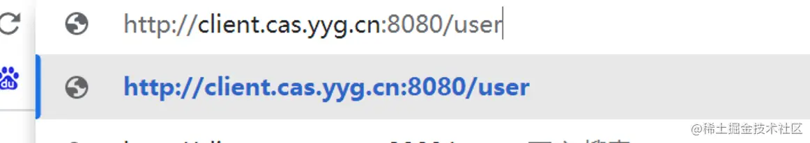 我们直接在浏览器中输入client.cas.yyg.cn:8080/user地址,这个地址… Client客户端项目中定义的测试接口,必须具有user角色权限才能访问,未登录时是不能直接访问的。
